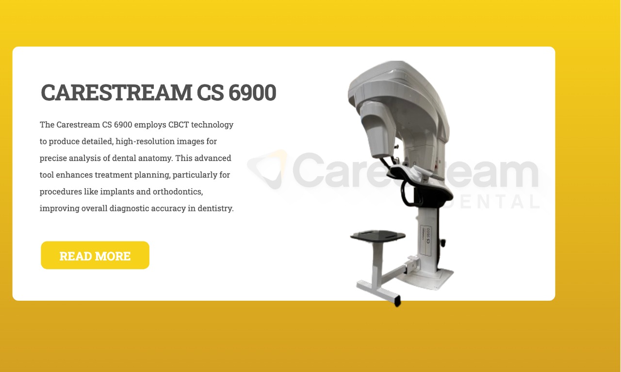 The Carestream CS 6900 employs CBCT technology to produce detailed, high-resolution images for precise analysis of dental anatomy. This advanced tool enhances treatment planning, particularly for procedures like implants and orthodontics, improving overall diagnostic accuracy in dentistry.